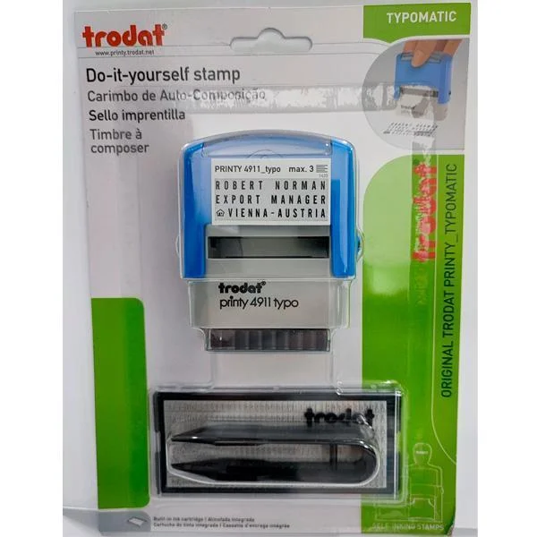 Carimbo de Montagem Trodat 4951 (Trodat 4911 Typo), monte você mesmo seu carimbo, este modelo vem com uma placa de texto e uma pinça para montagem. Tamanho máximo da placa de texto Até 3 linhas de texto.